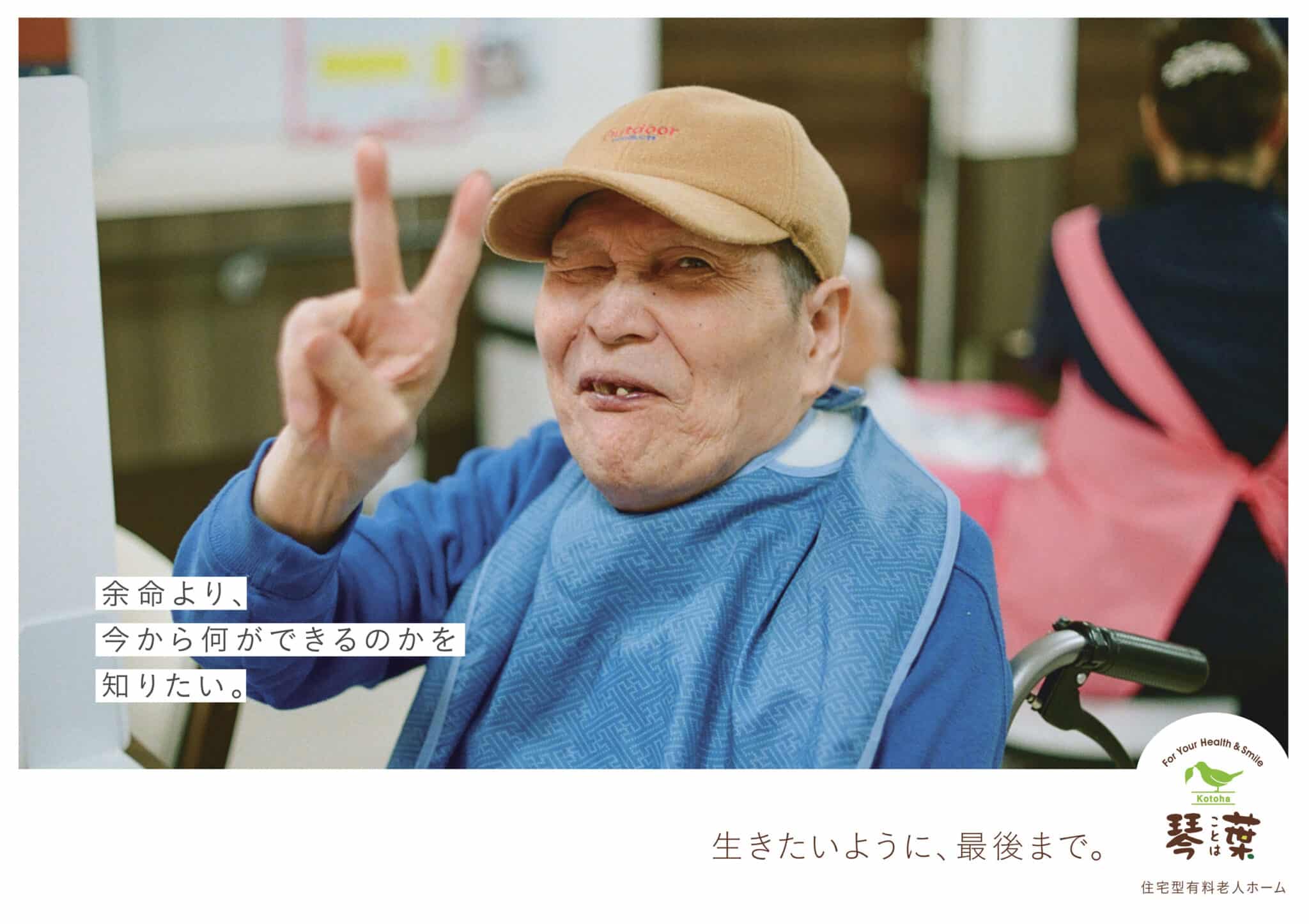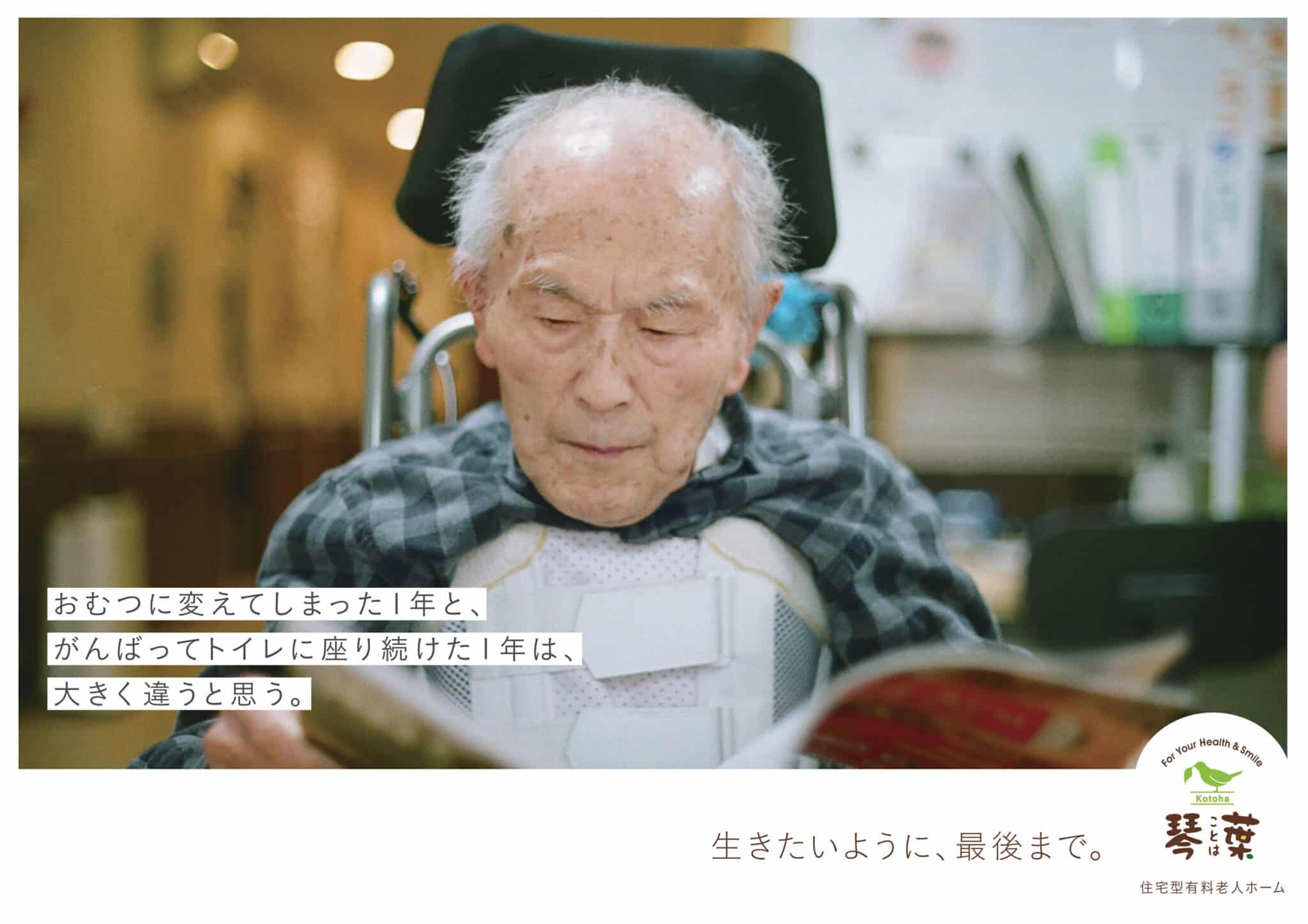 「酸素を吸入しながらも毎日ビールを楽しむ入居者さん」、「おむつを使わず尊厳を守り続ける介助」など、ありのままの日常を切り取ることで、「生きたいように、最後まで。」というコンセプトを強く印象づけています。
