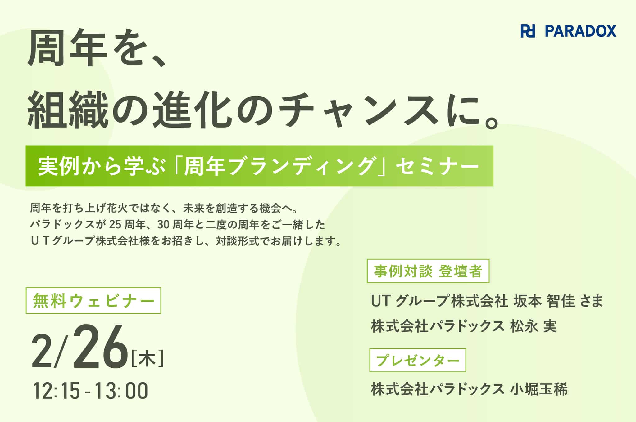 【2/26(木)開催】周年を、組織の進化のチャンスに。実例から学ぶ「周年ブランディング」セミナー